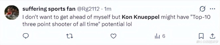 好意思球迷:我不思乱夸,但克努佩尔大略具备“有史以来最出色的三分球投手”那样的后劲。